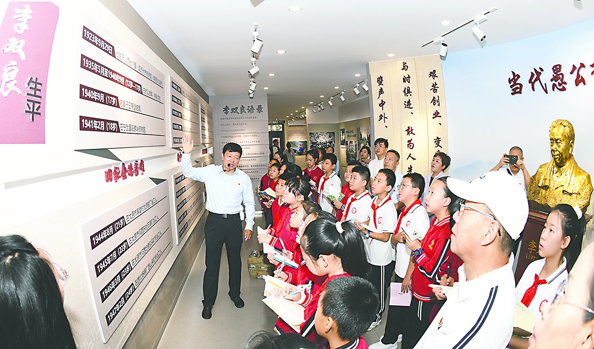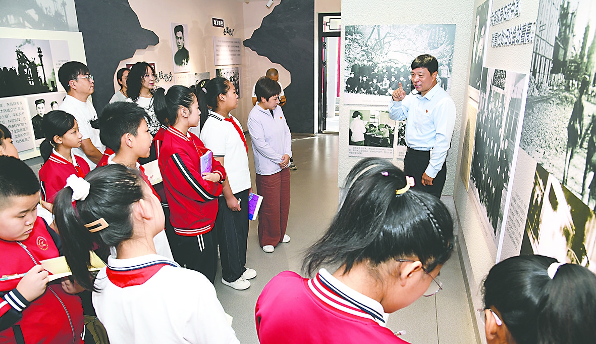 近日,应邀在北京天安门广场观看九三阅兵仪式的中国宝武太钢集团李双良事迹展览馆馆长李建国(李双良之孙)回到岗位,向太原市解放北路小学的学生们讲述观看阅兵感受,介绍李双良爷爷的治渣事迹,引导青少年坚定理想信念,传承优良传统,弘扬劳模精神,争做担当民族复兴大任的时代新人。(王旭宏)