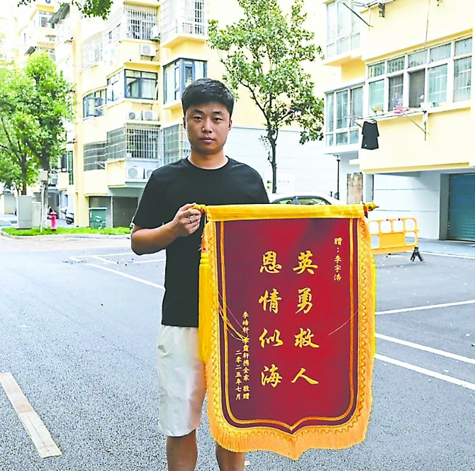 “当时根本没时间想自己的腰伤。”李宇浩回忆道。尽管医生再三叮嘱他术后不能负重,但他却分两次将孩子拖回浅滩。救援结束后,孩子的父亲执意要酬谢,这个“95后”却连连后退:“真不用。”并匆匆离开现场。两小时后,一面赶制的锦旗送到了李宇浩面前。捧着“英勇救人,恩情似海”的烫金大字,这个与钢水打交道的汉子腼腆地说:“真没必要……”