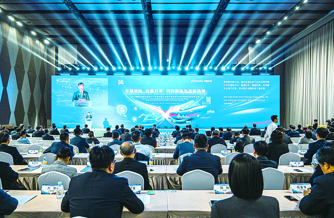 本报讯11月6日,在承载着钢铁工业厚重历史的金色炉台·中国宝武钢铁会博中心,2025新型低碳冶金现代产业链共链行动暨中国宝武全球采购供应链伙伴大会成功举办。宝武党委书记、董事长胡望明,国务院国资委规划发展局二级巡视员孙鹏,中国钢铁工业协会党委副书记、副会长兼秘书长姜维出席大会并致辞。
