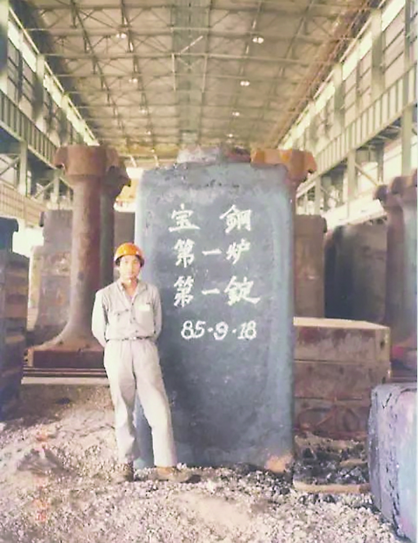 在宝钢股份宝山基地炼钢厂一炼钢工场的板坯库里,岁月的风霜在一根锈迹斑斑的钢锭与一块斑驳陆离的钢坯上肆意雕琢,与周围整齐排列、闪烁着金属光泽的崭新板坯相比,这对“钢铁耆宿”显得如此格格不入,却又散发着一种历经沧桑的独特魅力。每当我经过这里,目光触及这承载着历史厚重的第一锭、第一坯时,内心总会泛起难以抑制的激动,尘封的记忆如潮水般涌来,将我的思绪缓缓拉回到1987年那个金色的九月……