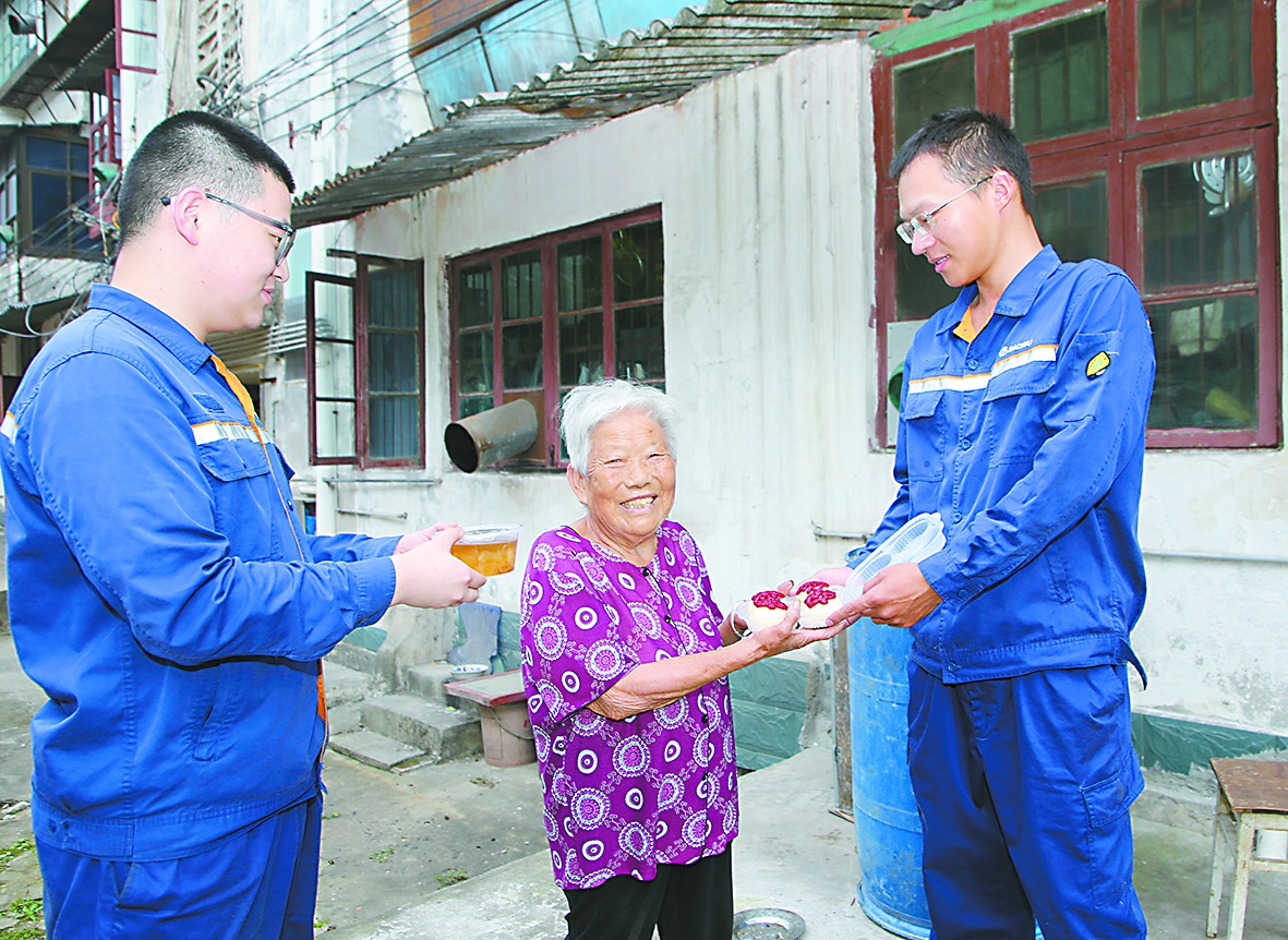今年重阳节,宝武资源武钢资源程潮矿青年团员们自制“福”字重阳糕,为矿区退休员工、空巢老人送去了祝福和关爱。