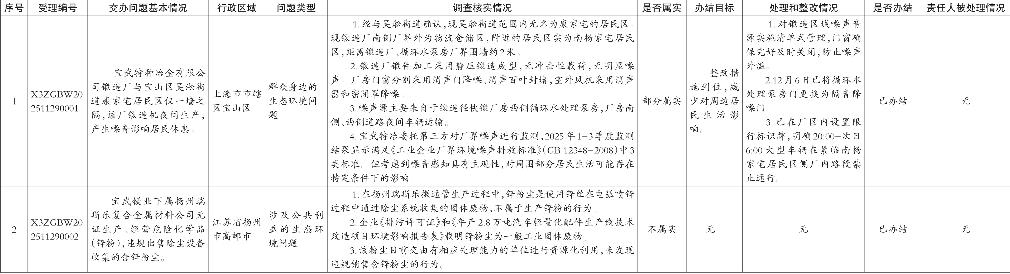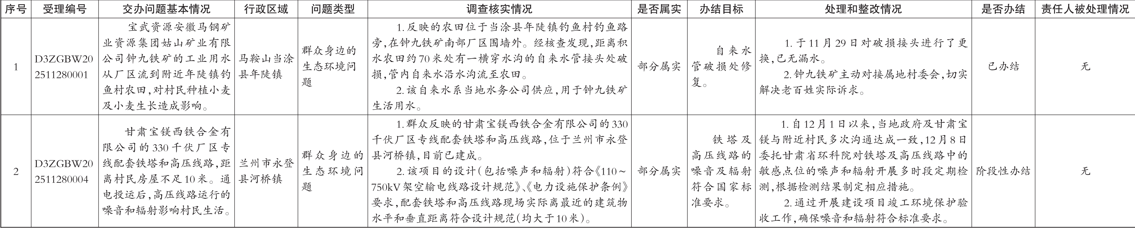 中央生态环境保护督察群众信访举报转办和边督边改公开情况一览表