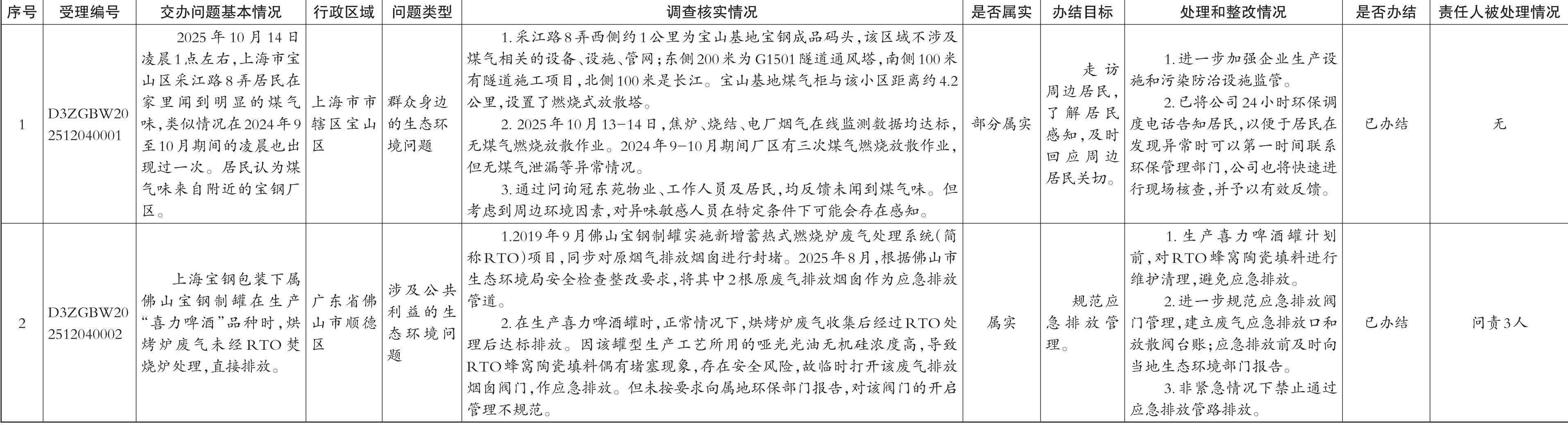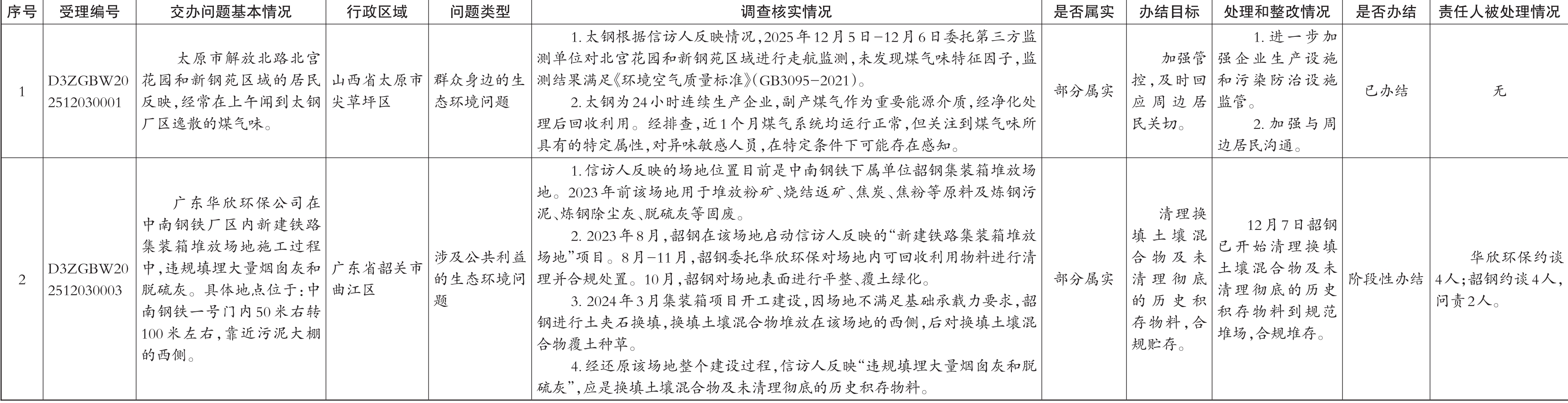 中央生态环境保护督察群众信访举报转办和边督边改公开情况一览表