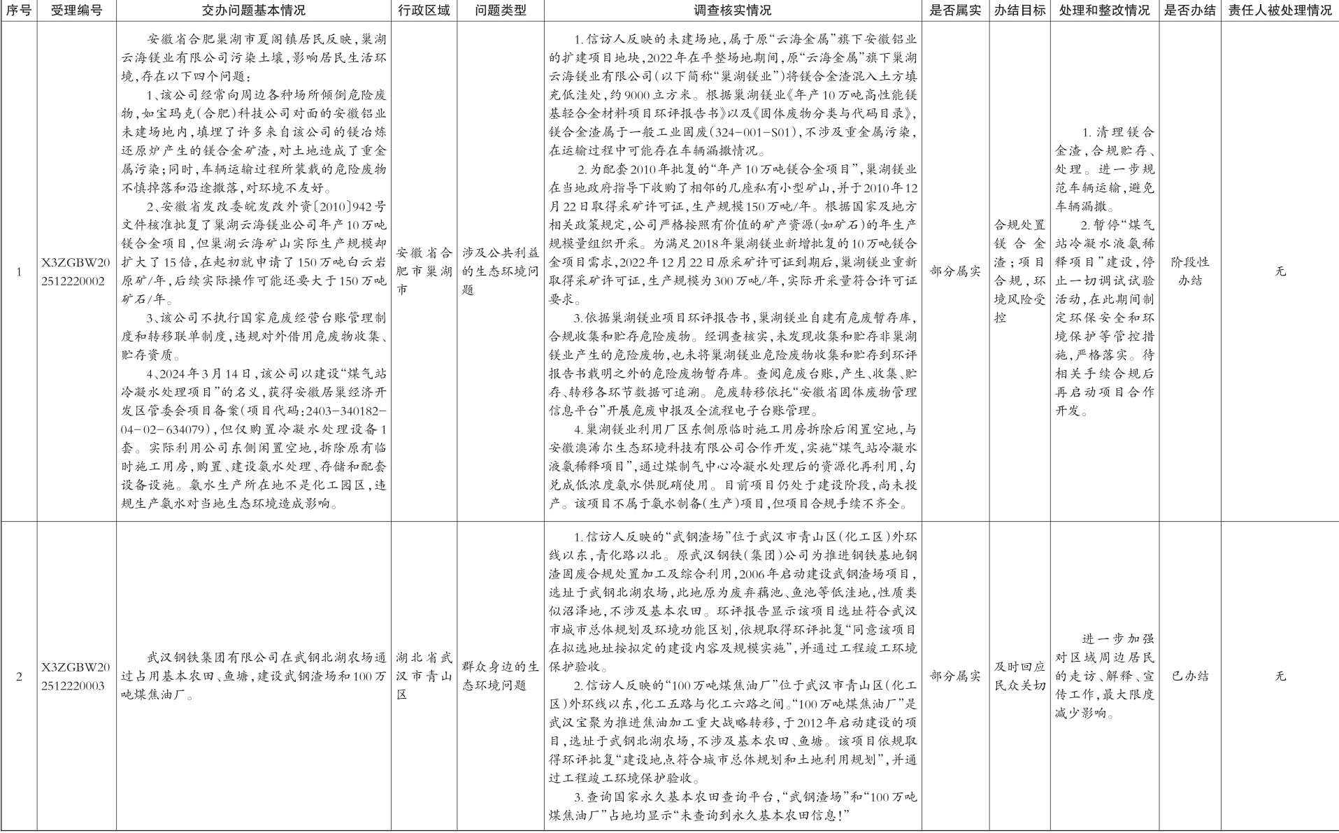 中央生态环境保护督查群众信访举报转办和边督边改公开情况一览表