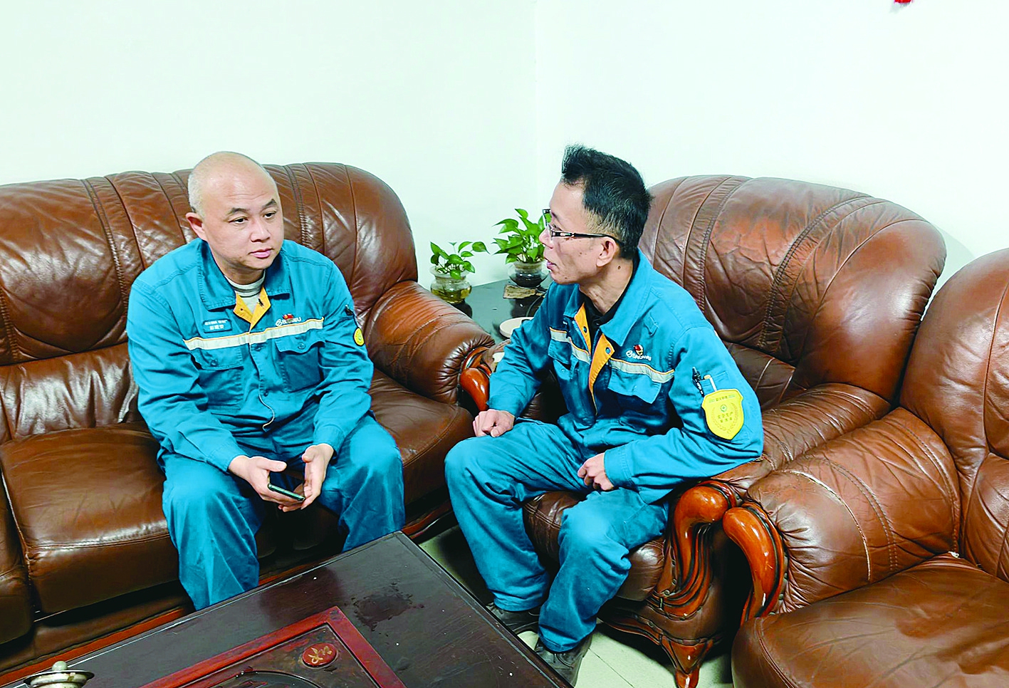 在企业变革发展的大背景下,中南钢铁中南股份炼钢厂公辅车间党支部书记潘仲(图中右一),坚持用心用情做好思想政治工作,以深入基层办实事凝聚人心,为企业的改革发展提供坚实保障。