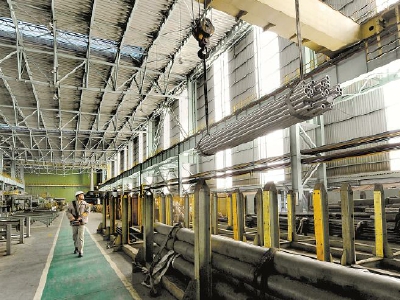 近日,宝钢特钢成功完成了首次承接的小口径石化用6 9 0 合金换热管合同,成材率较该类标准规格产品提升6 % 。图为成品吊运入库。