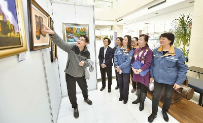 本报讯12月24日,纪念宝钢建设40周年员工美术书法摄影诗歌作品展在宝钢股份指挥中心一楼大厅开幕,诸多员工纷纷前往观展。