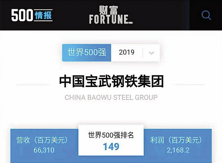 7月22日,财富中文网发布最新《财富》世界500强排行榜,中国宝武以营业收入66,310百万美元排名第149位,较上一年度跃升13位,位列全球钢铁企业第二。