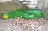 纬三路经四路附近,物料随意堆放在楼梯下。