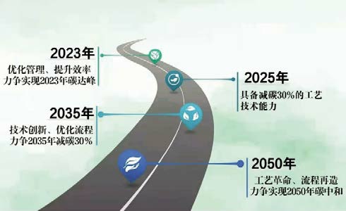 今年全国“两会”,碳达峰、碳中和首次写入政府工作报告。习近平总书记在“两会”上强调,要加大重点行业、重要领域绿色化改造力度,发展清洁生产,加快实现绿色低碳发展。今年1月,中国宝武发布了碳减排路线图———2023年力争实现碳达峰,2025年具备减碳30%的工艺技术能力,2035年力争实现减碳30%,2050年力争实现碳中和。