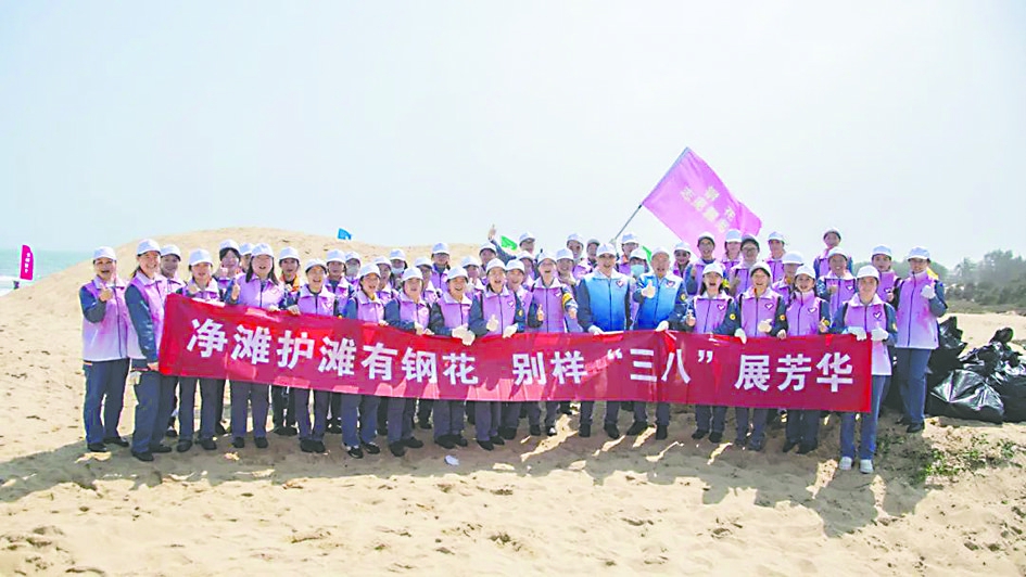 3月5日,为进一步弘扬雷锋精神,全力守护好湛江的碧海银滩,助力建设绿色可持续的海洋生态环境,宝钢股份湛江钢铁以“净滩护滩,守护湛蓝”为主题,组织开展“净滩”志愿行动。其中,有一支全部由女职工代表组成的“钢花”志愿服务队,在“三八”妇女节到来之际,一起加入这场充满爱心与责任的行动中。