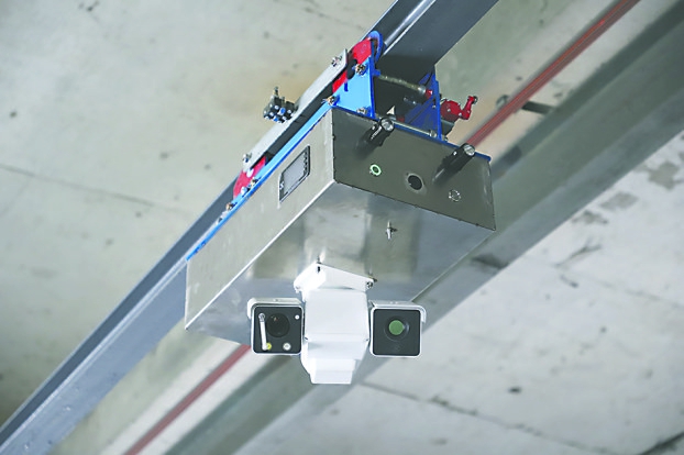 智能巡检机器人采用吊轨式设计,具有摄录、测温、粉尘监测、AI违章识别等功能,能够按照巡检操作人员预设的路线自主巡检,并在完成任务后自动回归进行电能补充。同时,控制画面中会呈现搭载相应传感器的各项参数,并通过无线网络将数据传输至中控室。一旦检测到异常情况,机器人会立即发出警报,并将详细信息推送至相关人员的终端设备。这一智能化巡检方式,不仅大大提高了巡检效率,减少了人工巡检的工作量和风险,还能实现对设备实时监控和精准维护,有效避免了设备故障的发生,保障了粉矿仓布料系统的稳定运行。