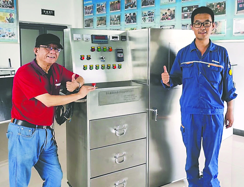 2018年冬天,因为参与滩涂1期仓库建设项目,我几乎半个月没能好好陪伴家人。师傅得知后,主动找到我的爱人,语重心长地说:“小毛现在正是爬坡过坎的时候,虽然家里的事顾得少,但这也是他成长最快的阶段。咱们一起推他一把,让他再上个台阶。”简单几句话,既安抚了家人的情绪,也让我更加坚定--有这样的师傅,我有什么理由不努力?受他的感召,我更能静得下心来搞创新,我的第一个专利《离合器助力性能便携式诊断装置》就是这么出来的。在与师傅的相处中,我深刻体会到了“身教重于言传”的真谛。他不仅通过耐心细致地讲解,将复杂的技术难题一一化解,更在实际操作中,以他那严谨细致、精益求精的工作态度,为我树立了终身学习的典范。在马迹山港,师傅花了整整10年时间,搞出了一套世界上最先进的输送带金属物检测去除系统,整个过程中失败了15次,修改了38次,但正是这38次修改,成就了38项国家专利,获得了两个巴黎金奖,包揽了中国港口科技进步一、二、三等奖。在师傅的言传身教下,我不断精进技艺、锤炼本领。面对港机设备磁滞联轴器故障频繁的行业难题,我带领团队现场攻关,经过10个多月的反复改进和优化,研制出我国第一台“港机磁滞联轴器力矩动态检测试验台”,应用后故障大幅下降,稳定了设备状态,实现了港机设备的安全高效作业。
