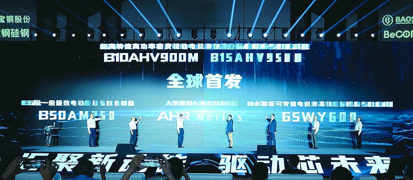 今年是宝钢股份硅钢事业部成立五周年。五年来,宝钢以建设全球硅钢第一品牌为战略目标,在硅钢生产领域不断取得新的突破。BeCOREs®宝钢硅钢坚持“以用户为中心、差异化、国际化、低碳化”的发展战略,不断优化产品结构,扩大高牌号产能。2024年产量突破300万吨,其中,高牌号销售量突破140万吨,且一路不断刷新更薄规格和更高牌号纪录。特别是近年来,宝钢股份在无取向硅钢领域不断取得新的突破,产销研团队加大关键核心技术攻关和新产品开发力度,为用户提供从设计、选材到应用的一整套电机解决方案;打破技术壁垒,AI赋能新硅钢,服务下游产业,实现产品的高效化、定制化和绿色化,为电机行业高端应用提供增值服务,共同推动全产业链高质量发展。