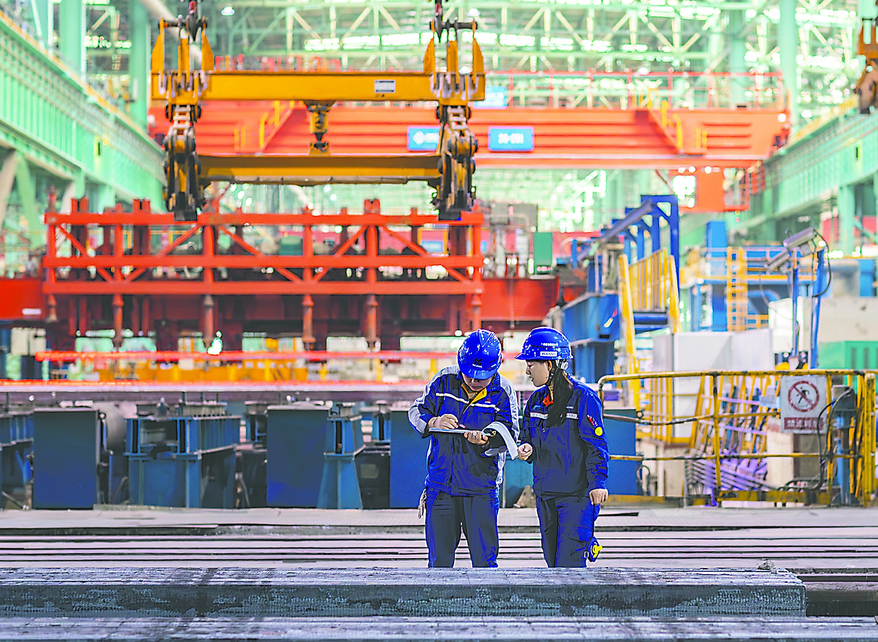 近年来,马钢有限特钢公司以产业升级为引擎、以技术创新为动能,聚焦风电能源用钢、轴承钢、齿轮钢等高附加值特钢领域,持续在产品研发、工艺优化与市场开拓中深耕细作,锻造特钢核心竞争力。图为特钢公司员工正在核对下线连铸坯的批号。 特约通讯员罗继胜摄