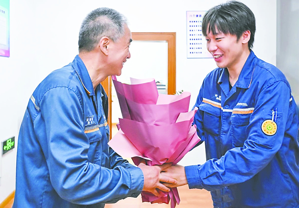张屹垚看出师父的不舍,也感受到师父对宝钢炙热的情感,“或许师父还能陪我们工作到65岁、68岁。现在,我的经历和积累还远远不够,要接上师父的班还有很长的路要走,有些焦虑,但同时,也有一丝庆幸,毕竟师父还在身边,抓紧学抓紧成长,尽早让师父放心、让宝钢放心”。