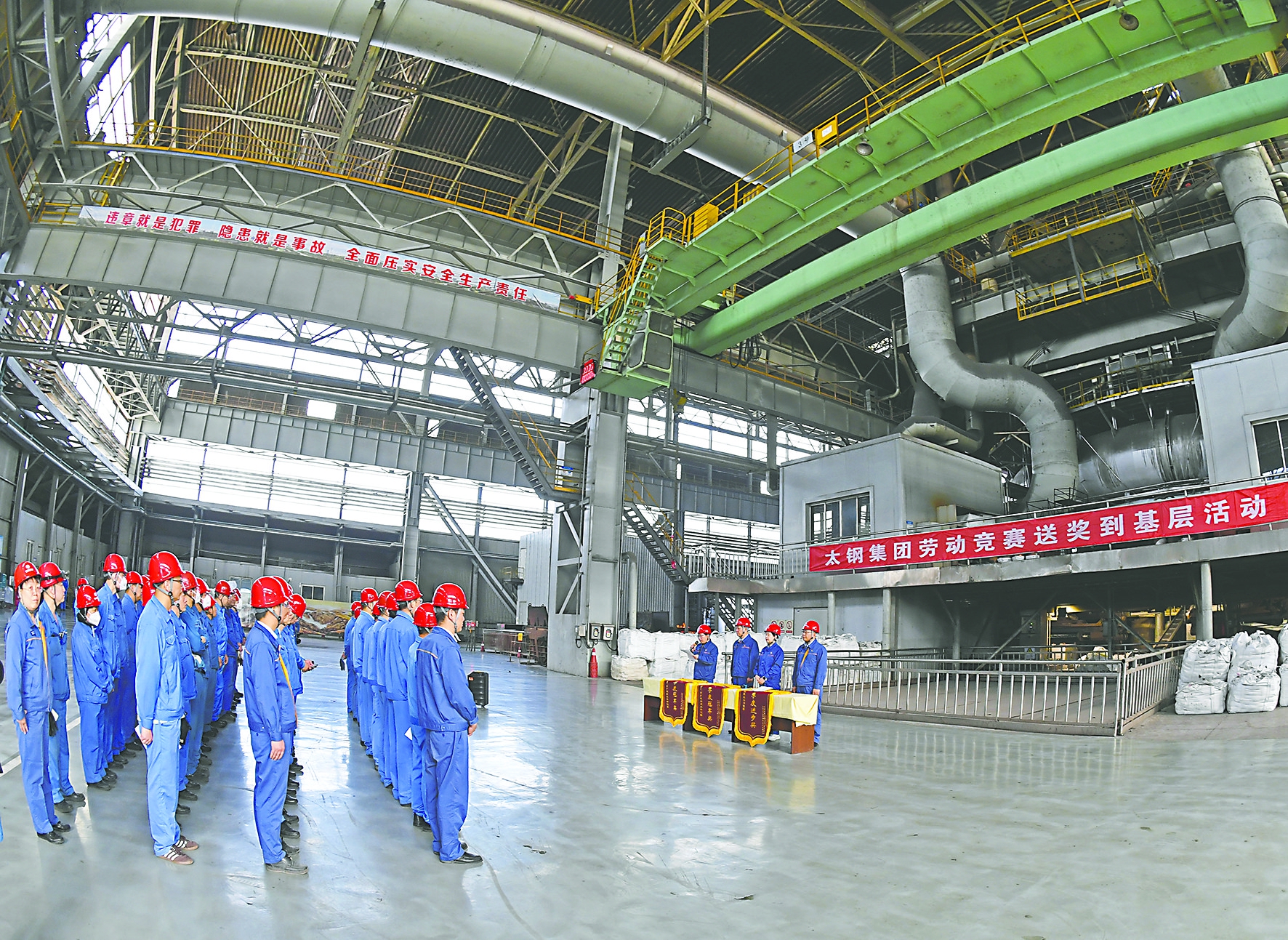 近日,太钢集团在炼铁厂5号高炉前举行“送奖到基层、授奖到岗位”活动。今年一季度以来,太钢积极开展铁前系统降本提效赛、钢轧系统对标创效赛、营销系统产品盈利改善赛三大核心劳动竞赛。铁前系统降本提效赛促进高炉铁水成本下降12.4%、配煤成本下降24.75%;钢轧系统对标创效赛使产能利用率平均完成104%、吨钢利润较目标值增长33.6%;营销系统产品盈利改善赛实现不锈钢白皮卷产品结构增效1193万元,取得了显著成效。 通讯员 王旭宏 摄影报道
