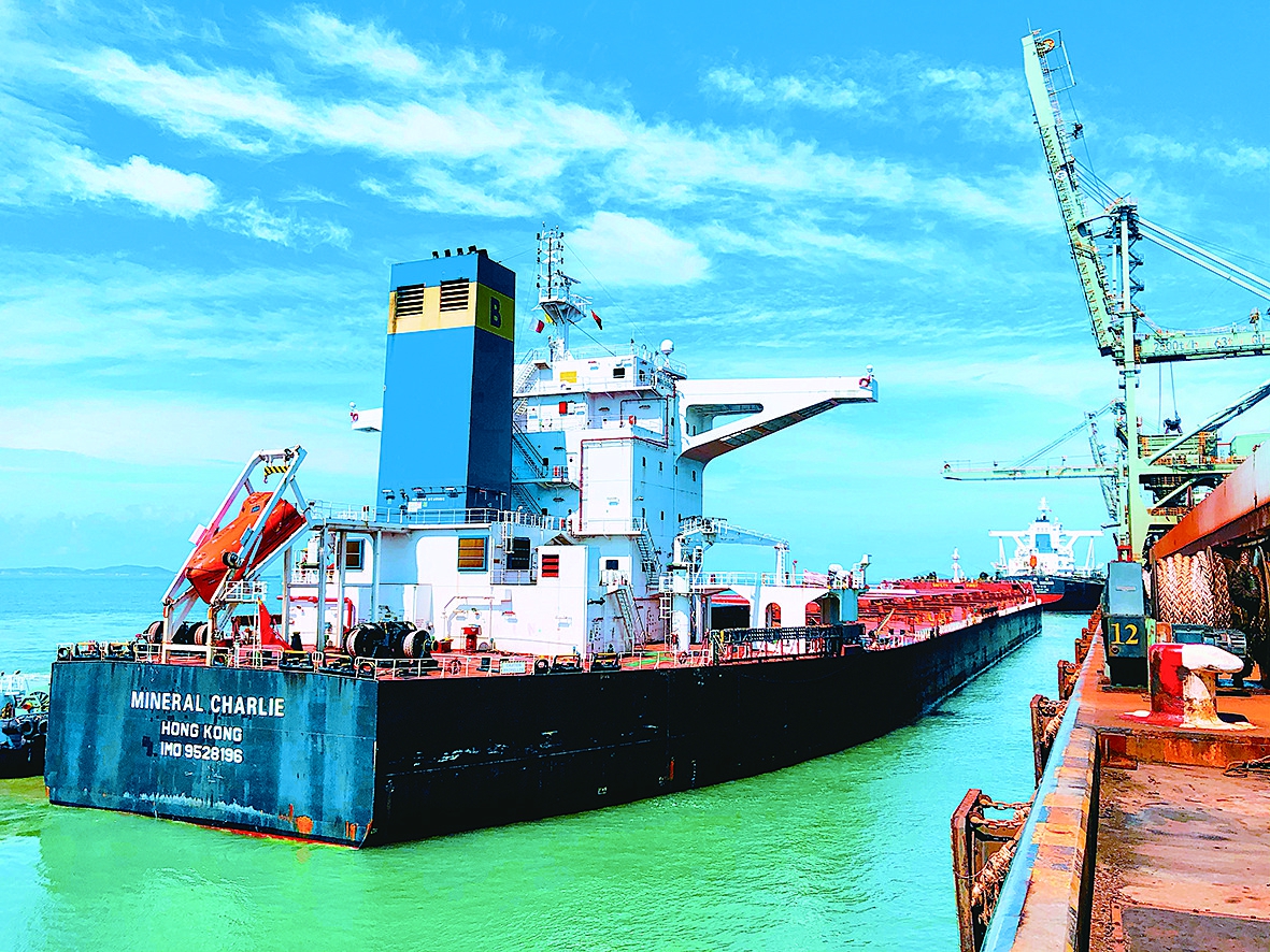 对此,船务部迅速成立专项工作组,秉持“安全、合规、高效”原则,全力开展全链条服务。在项目筹备阶段,组织部门业务骨干深入研读海事监管政策,并与舟山相关部门开展多轮磋商。针对临时码头泊位参数、潮汐窗口期等关键要素,团队精心优化通航保障方案。经过1个月的反复论证和多次修正,最终定稿并成功获得海事作业许可。2025年3月1日,“振华31”轮顺利靠泊中矿马迹山港,正式开启作业。