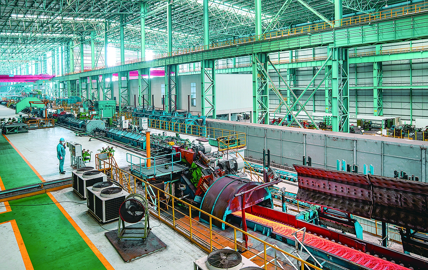 图为马钢有限特钢公司生产线上,员工正有序操作设备、赶制订单。