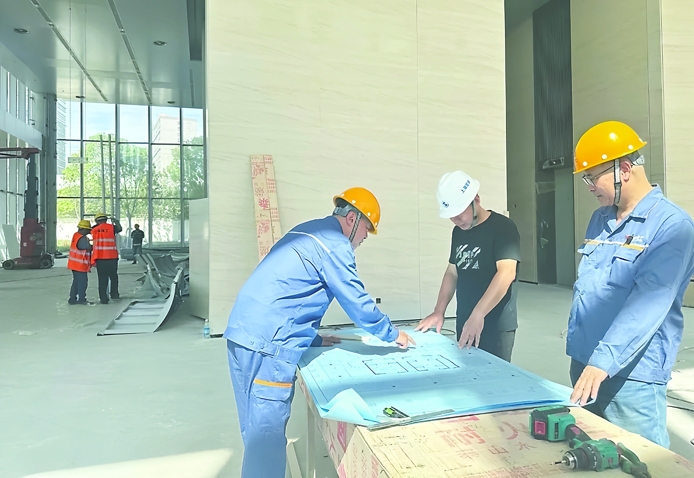 跟随巡检人员的脚步,记者来到设备层20层。这一层的中央空调机房,能实现20层及以上楼层的冷热调控,目前处于调试状态。在中央空调机房,胡宇涛等人认真检查和记录中央空调水管等设施的状态。“天气越是炎热,越是要对消防设施、空调设施等进行重点检查。”他们说,在做好防暑降温的基础上,所有建设者将坚守岗位,确保大楼按时高质量交付。