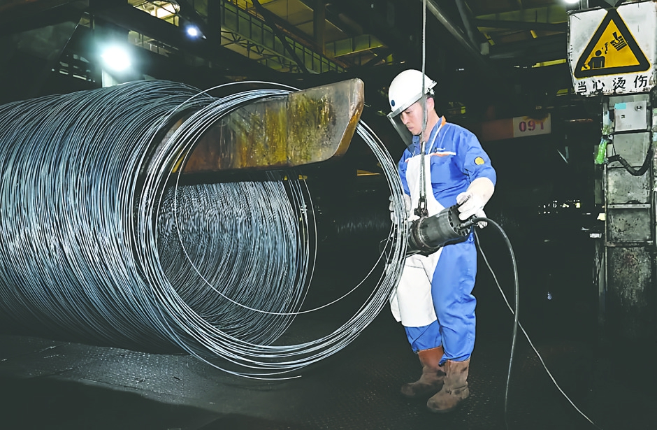 钢事业部一片火热。走进条钢厂线材区域,可以看到随着运输设备的转动,一卷卷表面温度在200℃以上的线材盘卷有序进入修剪点。记者站在安全过道上,距离运输线大约一米,线材盘卷经过时阵阵热浪扑面而来。