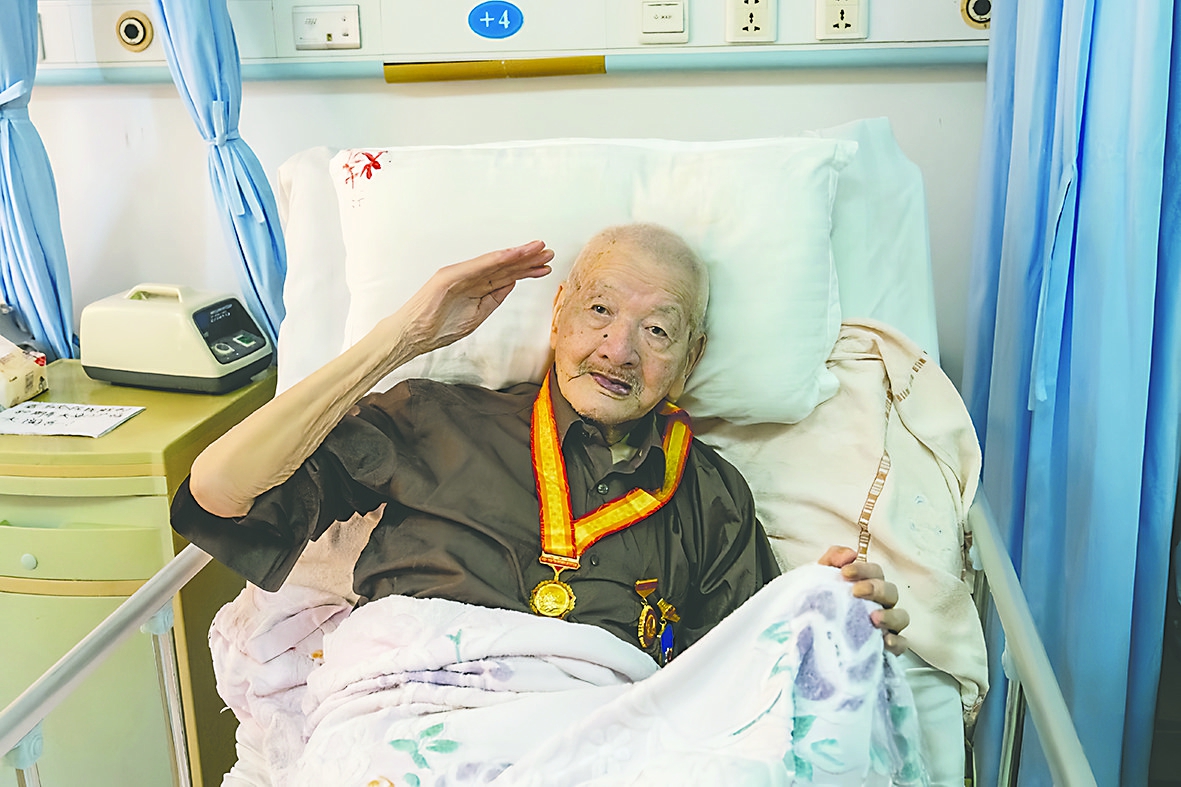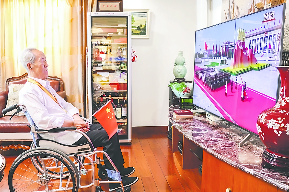 在上海龙华医院住院大厅,一位满头银发的抗战老兵目不转睛地注视着大屏幕上的阅兵方阵,他就是宝钢股份梅钢公司的离休干部胡兆祥。胡兆祥的儿子说:“父亲总是反复提起,这一生最明智的决定就是跟着党,捍卫和平与正义,换来如今的盛世繁华,值得!”