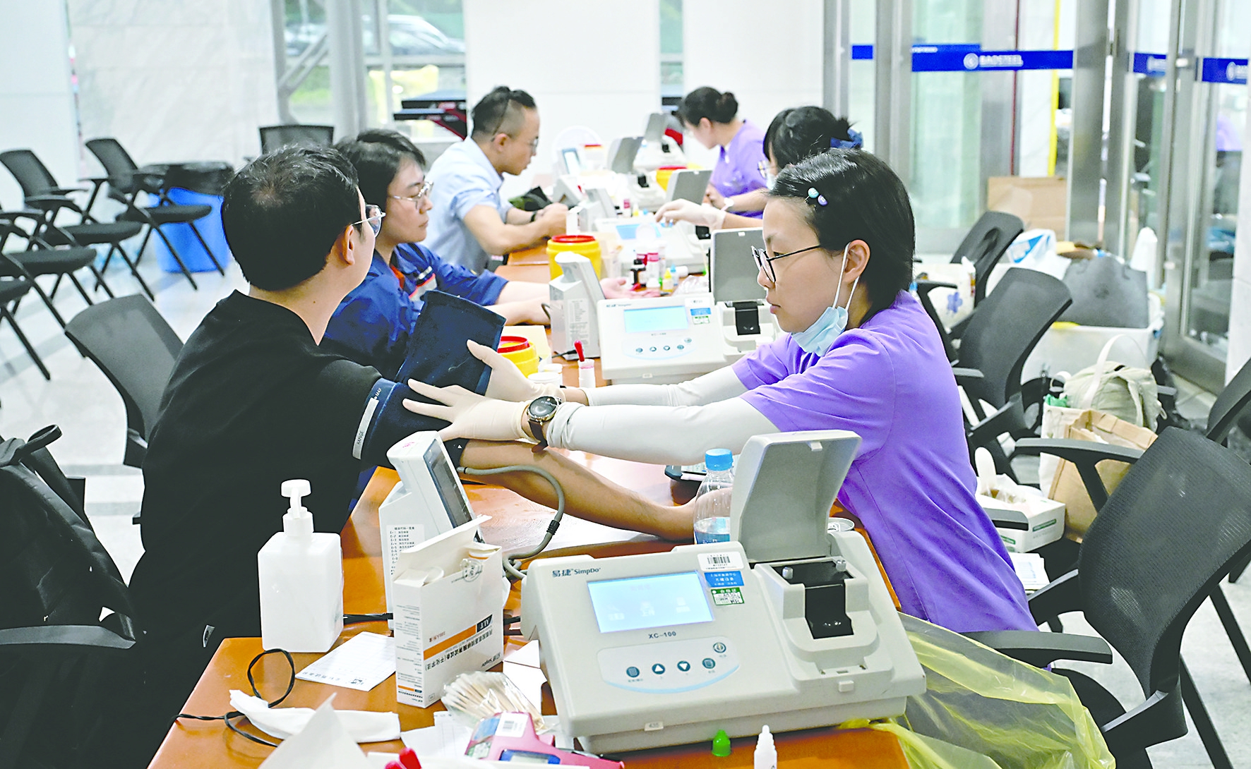 9月3日,宝武2025年无偿献血活动在宝钢股份宝山基地体育馆举行,沪内共44家单位的上千名(含候补)员工积极参与。 记者 张 勇 摄影报道