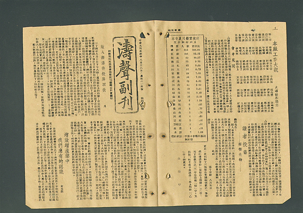 ▲抗战胜利《涛声副刊》文章