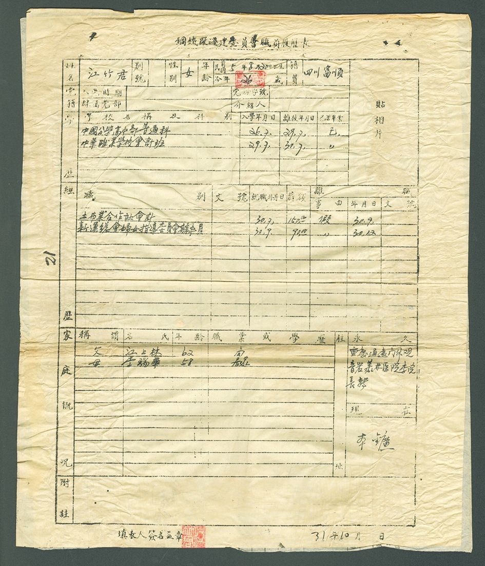 ▲江竹筠及其履历表
