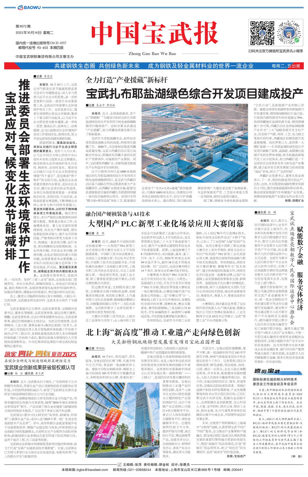 宝武扎布耶盐湖绿色综合开发项目建成投…