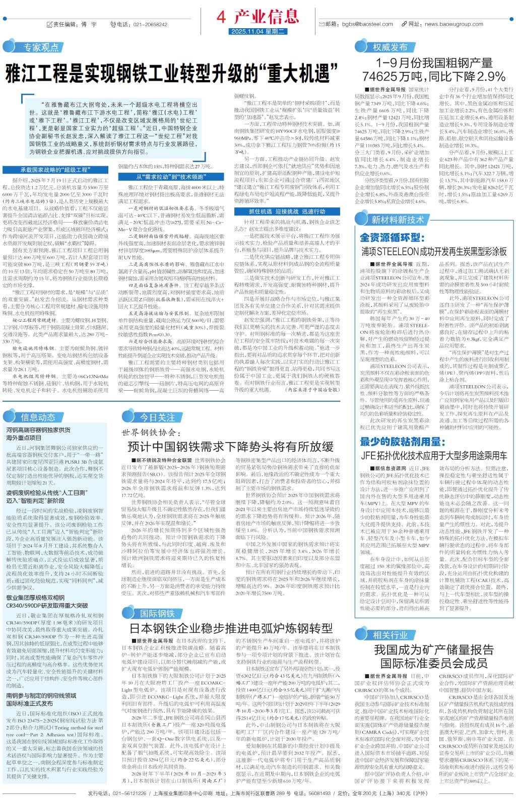 日本钢铁企业稳步推进电弧炉炼钢转型