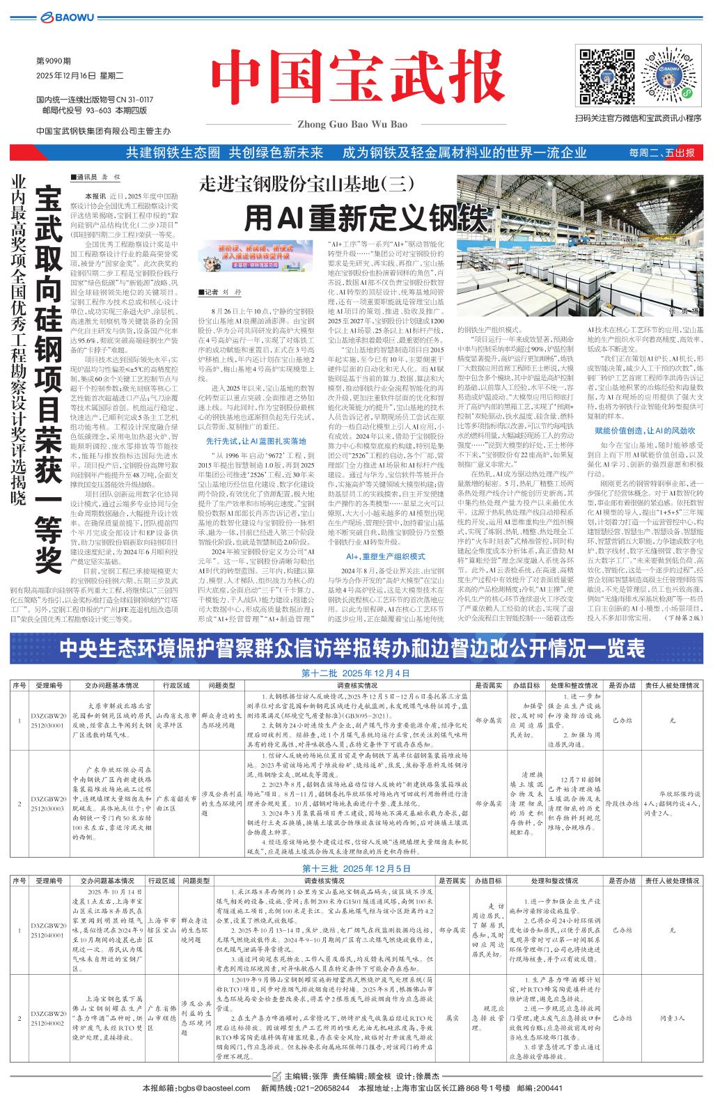 宝武取向硅钢项目荣获一等奖