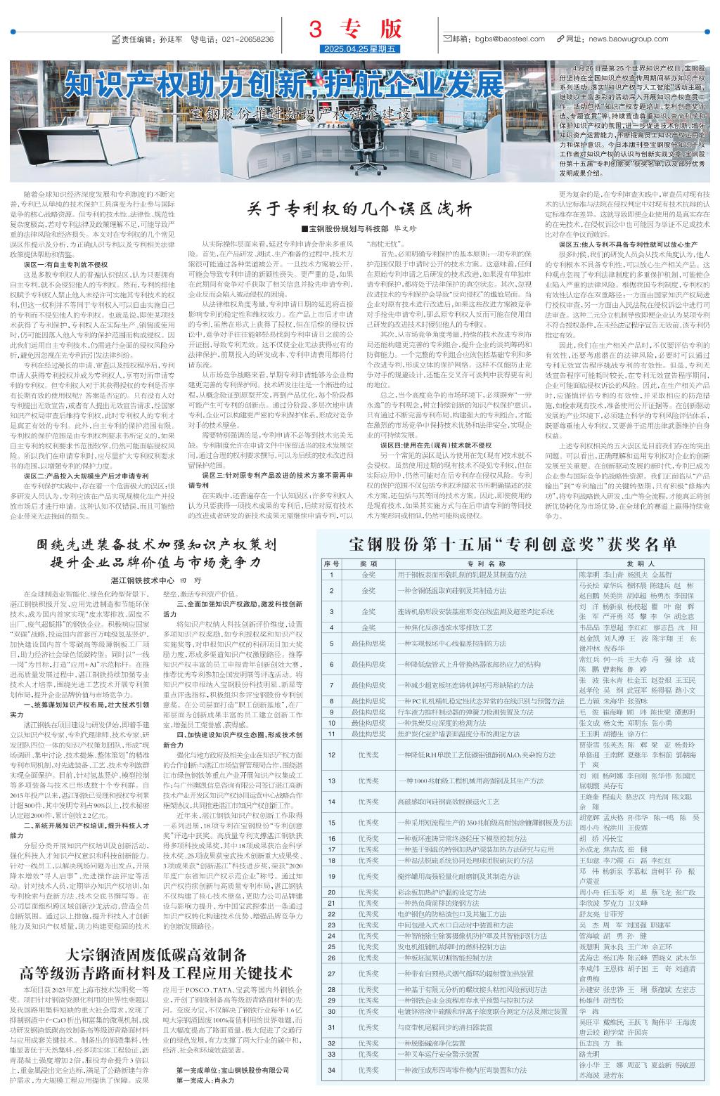 宝钢股份第十五届“专利创意奖”获奖名…