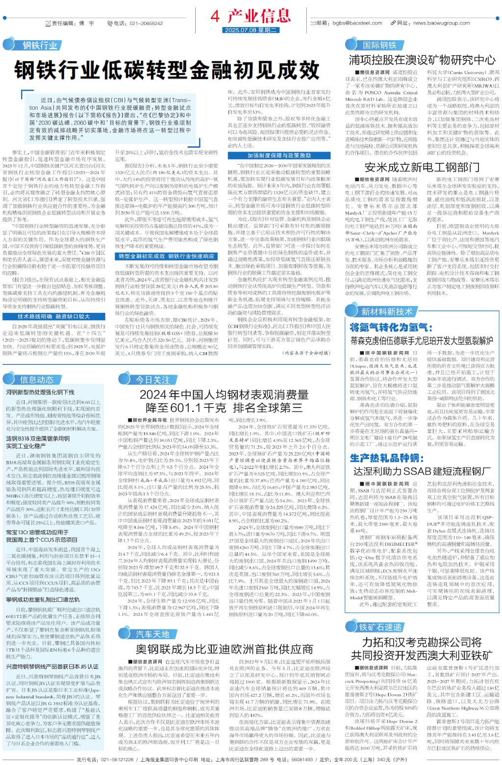 钢铁行业低碳转型金融初见成效