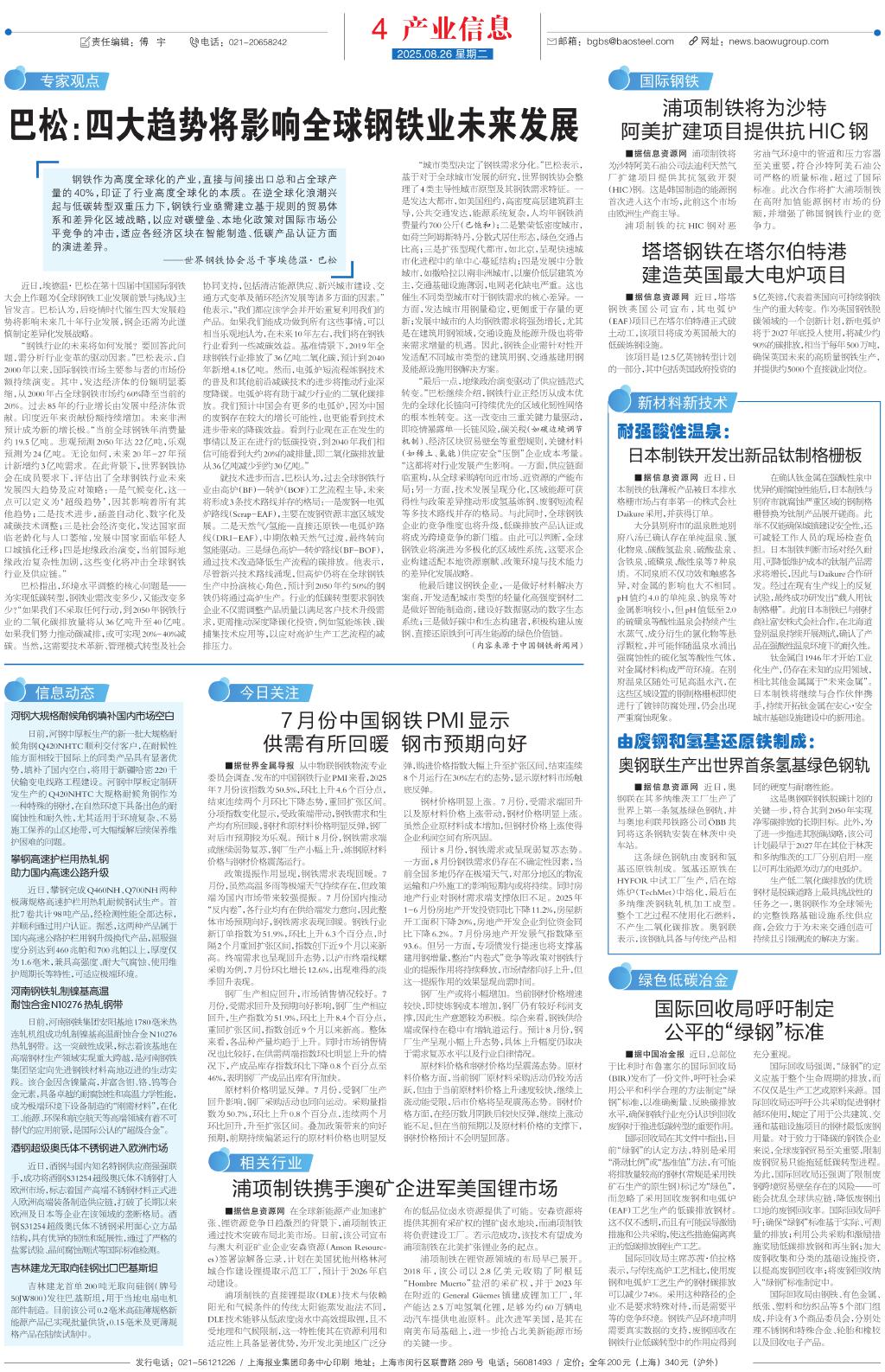巴松:四大趋势将影响全球钢铁业未来发…