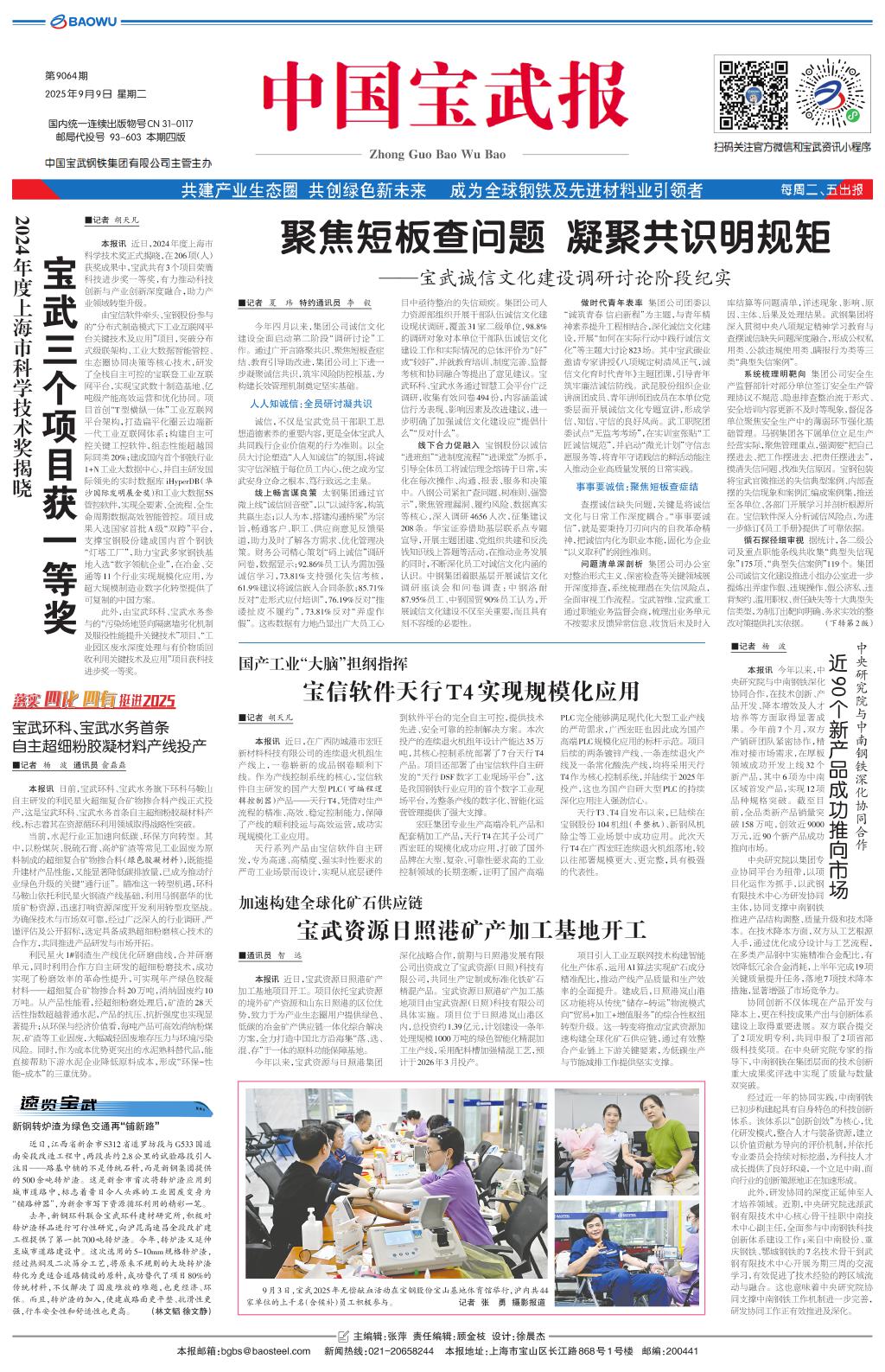 宝武三个项目获一等奖