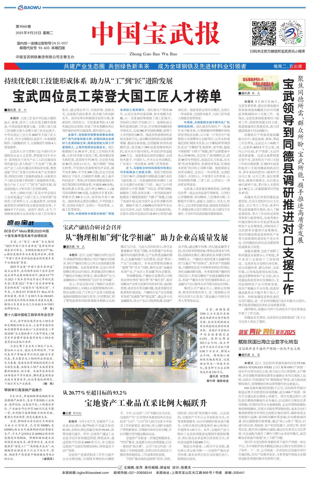 宝武四位员工荣登大国工匠人才榜单