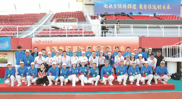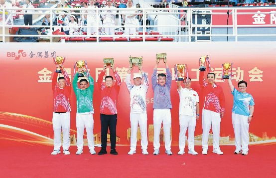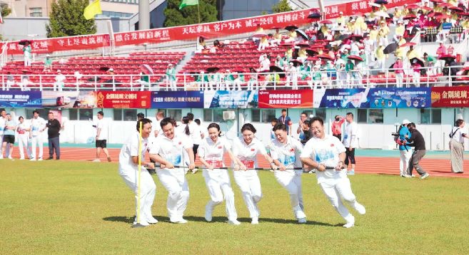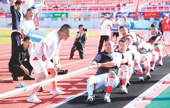 集团党委副书记、总经理顾昱为拔河比赛发令开赛
