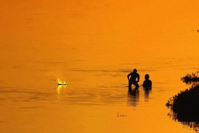 一天,我和爷爷来到河边打水漂。