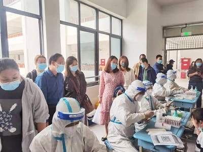 10月13日,扬州市卫健委、江都区卫健委莅临我校建乐校区指导师生核酸检测工作。