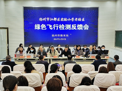 此次“绿色飞检”由扬州市教科院副院长李建勇领队,扬州市教科院监测中心主任殷传勤携专家团队,在区教育局教研室主任吴金生陪同下,详细查看了老校区的日常工作,对“双减”下的教育教学工作指明了方向。区教育局副局长周恩勇参加了反馈会议。