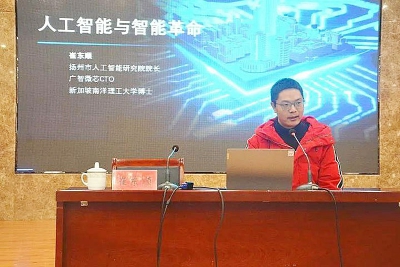 12月24日下午,我校第22届红领巾创造节“专家进校园”活动在新校区报告厅举行。本次活动,学校特别邀请了扬州市人工智能研究院院长、广智微芯联合创始人、广智微芯首席技术官崔东顺博士,他以《人工智能与智能革命》为题,为400多名师生上演了一场精彩的科普演讲。