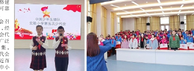 辅导员韩秀娟老师、施玉霞老师和冯娟老师分别带领参会的少代会代表们重温入队誓词,队员们的眼中流露出毫不动摇的坚定信念与热烈的爱国之情。