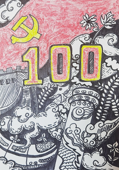 创作这幅作品的时候,即将迎来中国共产党100周年华诞。100年光辉历程,100年丰功伟绩。回首我们党苦难辉煌的历史,感悟一代代共产党人的坚定信念与赤子情怀,总有一种强烈的情感重重叩击着心弦,总有一面精神的旗帜高高飘扬在心间。这是“颗颗红心跟党走,砥砺奋进志不移”一种强大的力量。如今,我们沐浴在党的光辉下一定要牢记党的历史,并把中国共产党的伟大精神一代代的传承下去,党在我心中,党永远都在人民心中!