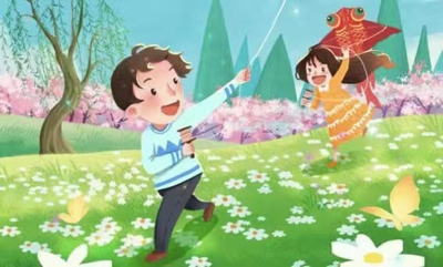 “儿童散学归来早,忙趁东风放纸鸢。”春天来了,孩子们怎能不兴奋?广场上,公园里,都有他们快活的身影。东风呼呼,孩子们手中的风筝多种多样:霸气的蜈蚣、威武的战斗机、可爱的哆啦A梦、美丽的长发公主……让人目不暇接。原本湛蓝的天空,在一瞬间成了风筝的海洋!我和妹妹也兴高采烈地加入进来。妹妹拉线,我托着“宇航员”风筝,呼啦啦,风筝飞起来了!两条彩带飘起来了!承载着我太空梦想的风筝在空中越飞越高,越飞越远……