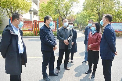 ●4月19日上午,市区领导“四不两直”进校园检查我校防疫工作。