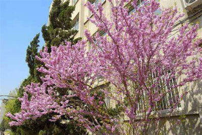 小园内有紫荆数棵。冬日,截其枝条数寸。初春二三月时,可见其上有紫色小花苞,累累,并不见绿叶。四月清明之后盛放,花如紫晶之色,密如云霞,甚美!其娇小姿态,异于别花也。待其花凋零,落泥中,枯枝之上才见新叶,此性甚似春梅。