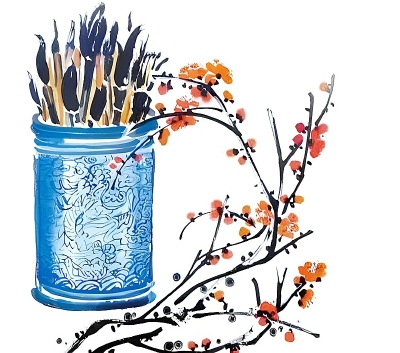 “爹!当我正要落笔写字的时候,发现我的笔头上的狼毫竟然生出了一朵美丽奇异的花,花香沁人心肺,令人陶醉。爹爹,您说神不神奇!”李白开心地讲着。