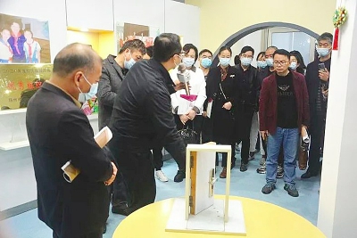考察团移步“创客中心”,参观作品陈列室。近年来,我校自主开发了系列“和实课程”,为师生搭建平台,师生在各类科创比赛中屡获佳绩,二十多项学生创新作品成功申报国家发明专利。