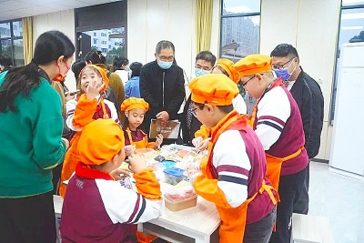 社团是孩子们自由栖息、快乐驰骋的舞台,是展示学校办学特色的闪亮名片。纸语视界、木工坊、机器人、书法、茶艺、古筝、围棋等社团活动精彩纷呈。恰逢我校近期开展的创造节系列活动之--环保服装秀。孩子们精致的服装作品,入微的细致表演,蓬勃的生长精神,得到了考察团老师们的高度赞许。新校区劳动实践馆已投入使用。孩子们用巧手制作美食,观摩老师们边看边询问,表现出浓厚的兴趣。